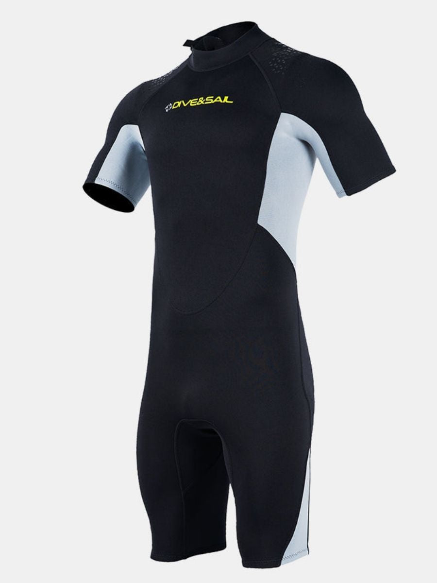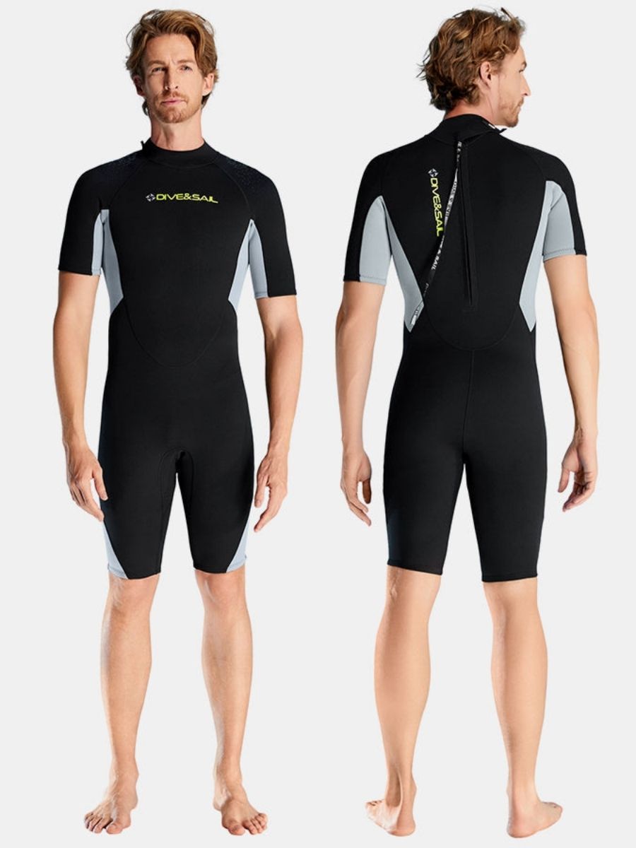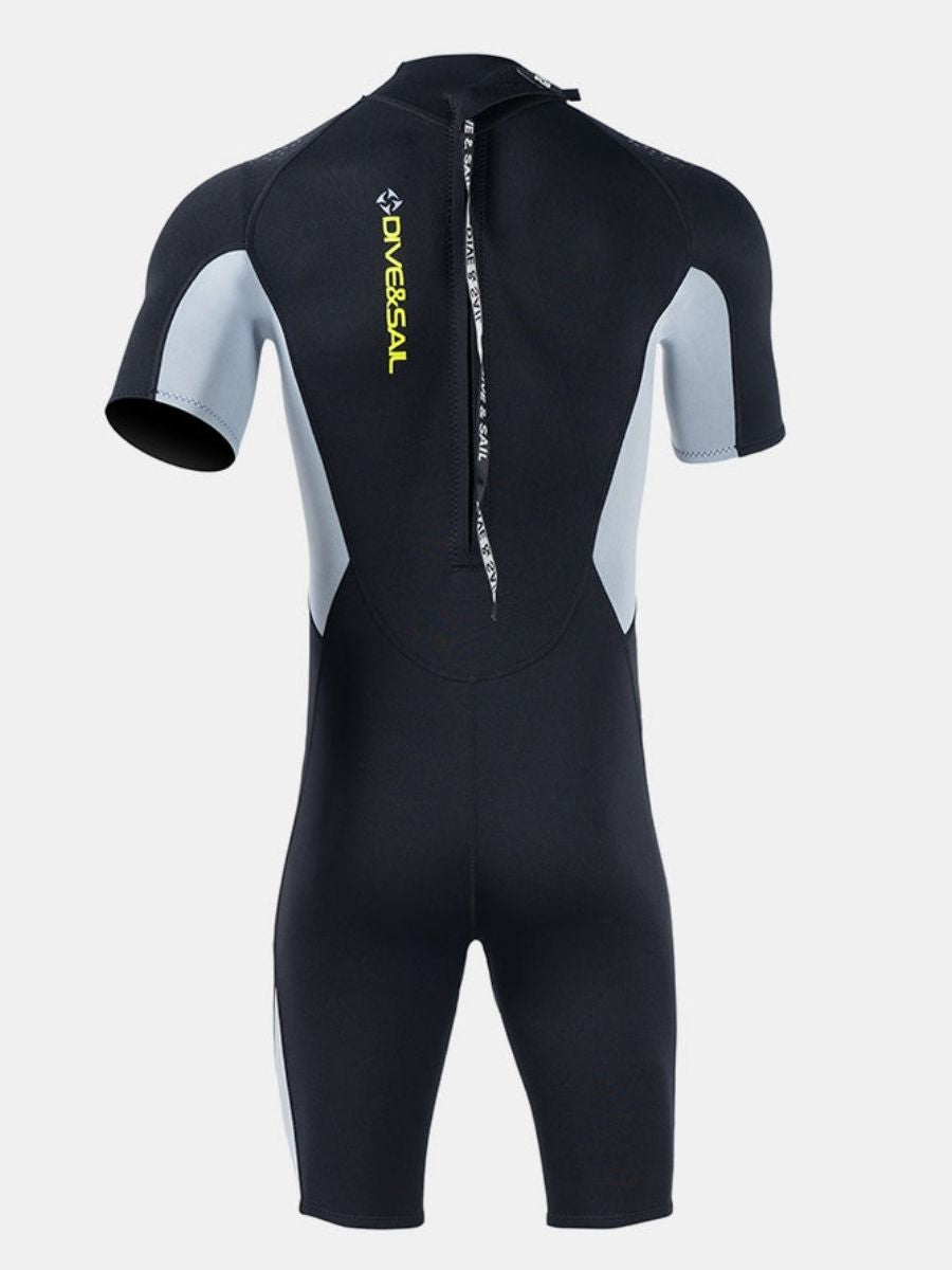1.5mm Men's Short Sleeve Gray Cold-Proof and Warm One-piece Back Zip Shortie Wetsuit