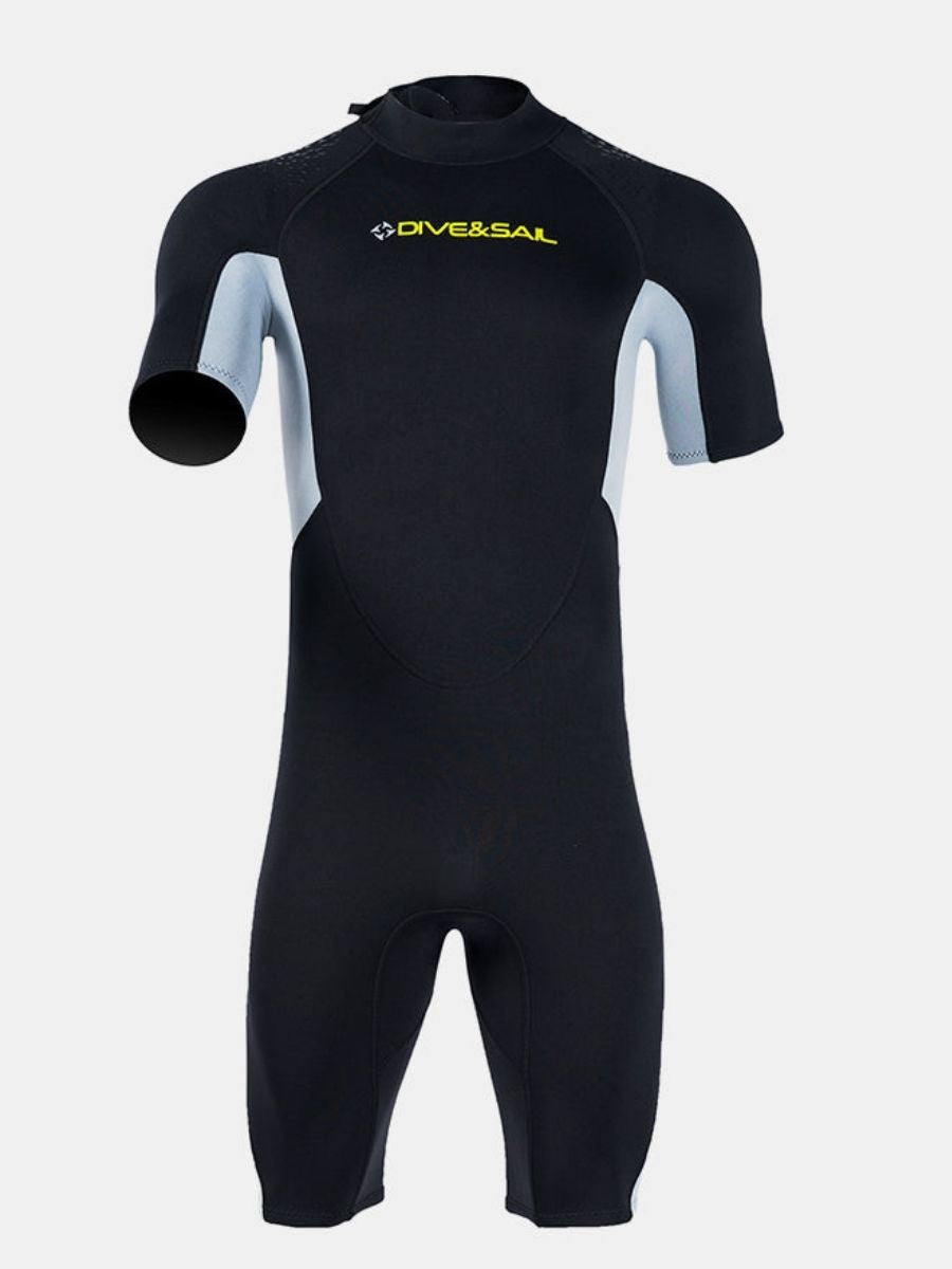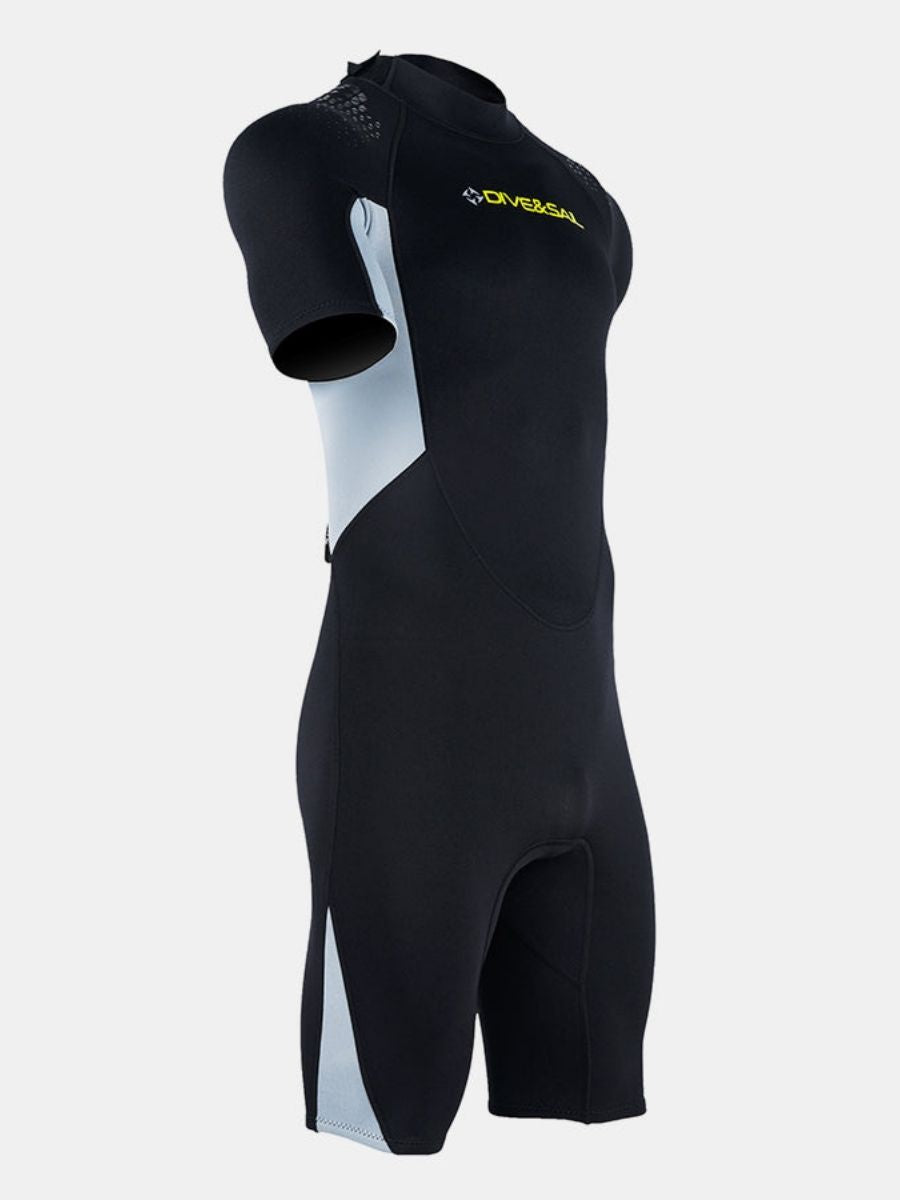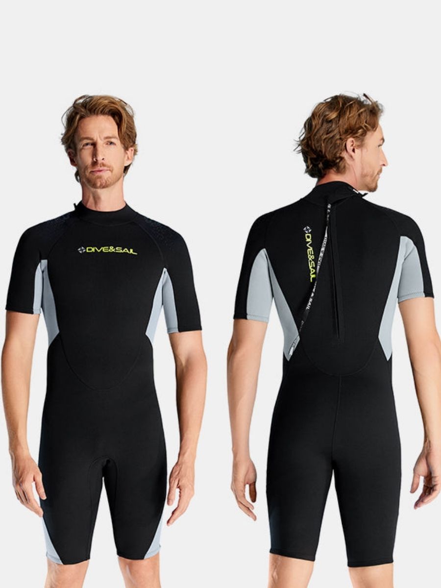 1.5mm Men's Short Sleeve Gray Cold-Proof and Warm One-piece Back Zip Shortie Wetsuit