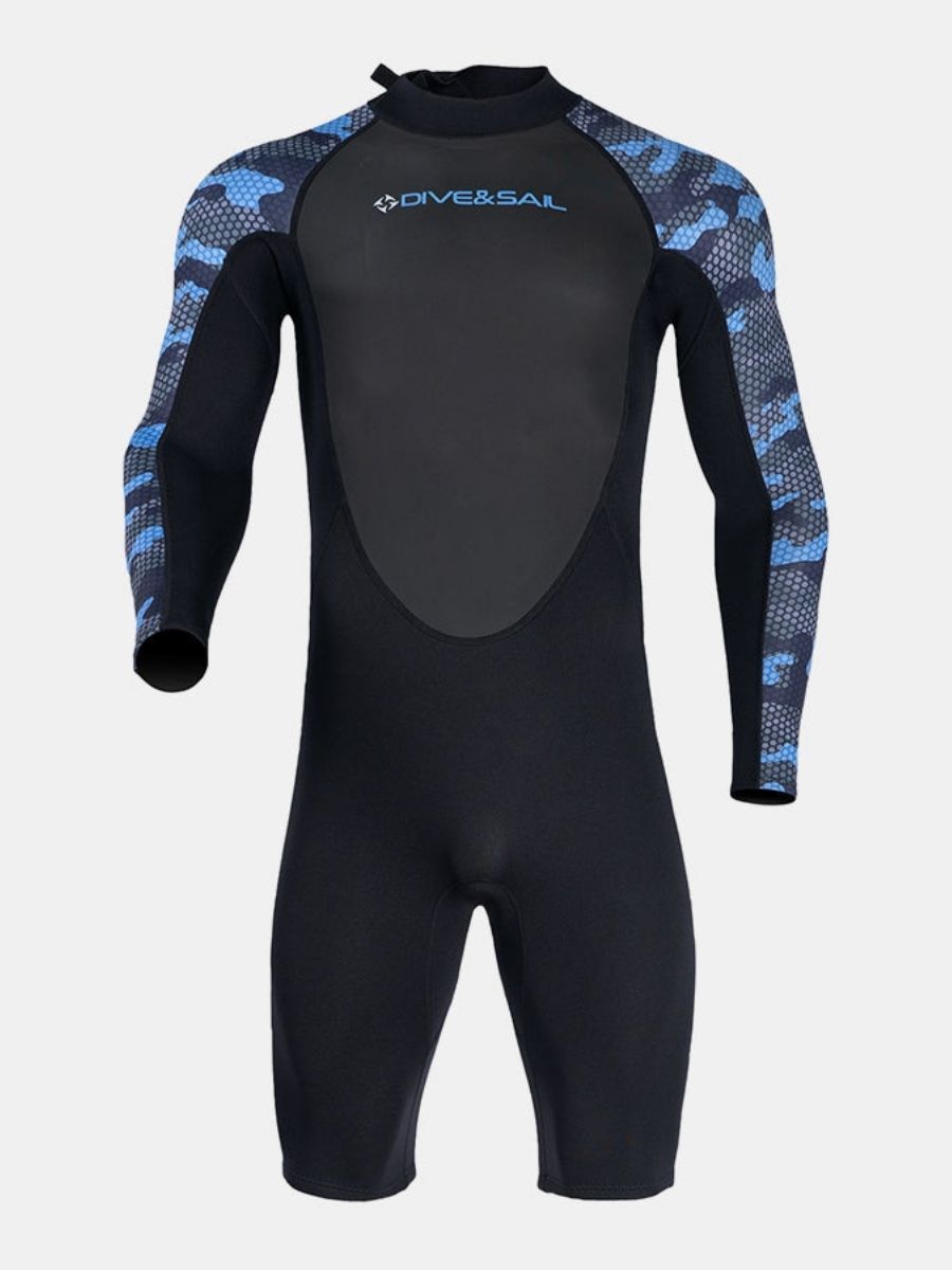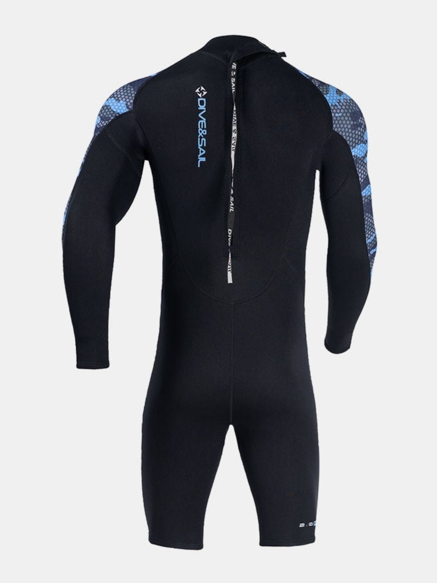 2mm Men's Thickened Warm Long Sleeve Short One-Piece Back Zip Shorty Wetsuit