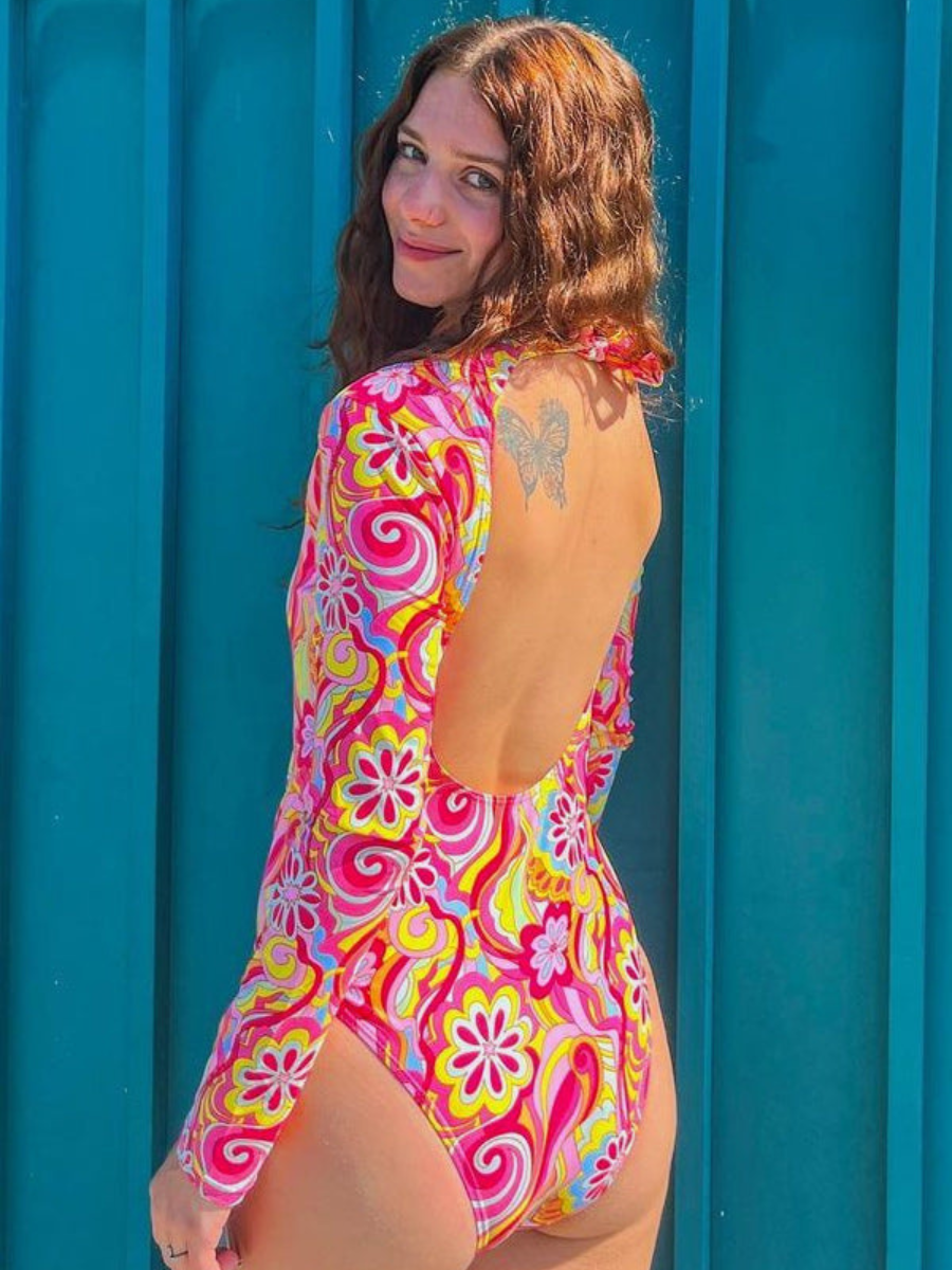 Both the One-Piece Swimsuit and the Tied Backless Floral Long Sleeve UPF50+ Rash Guard are made from super-stretchy fabric that supports dynamic movement and high elasticity, ensuring a great fit and maximum comfort during any water-based activity.