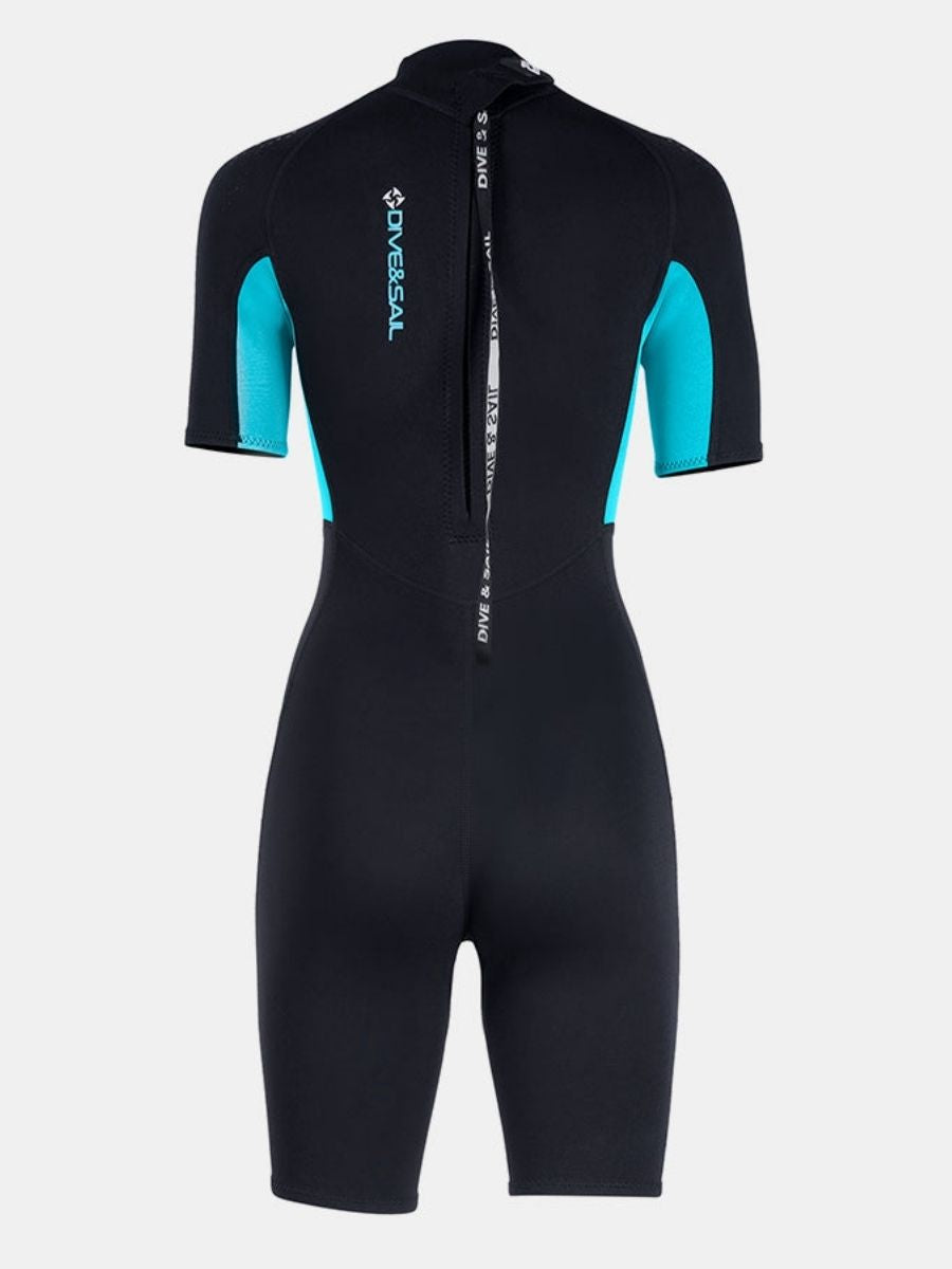1.5mm Women's One-piece Short Sleeve Cold-Proof And Warm Blue Back Zip Shortie Wetsuit